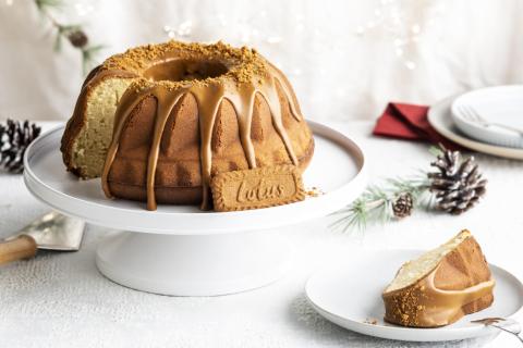 Deze prachtige tulband cake zal van iedereen aandacht krijgen tijdens de feestadgen. Mooi en heerlijk dankzij de biscoff-touch.
